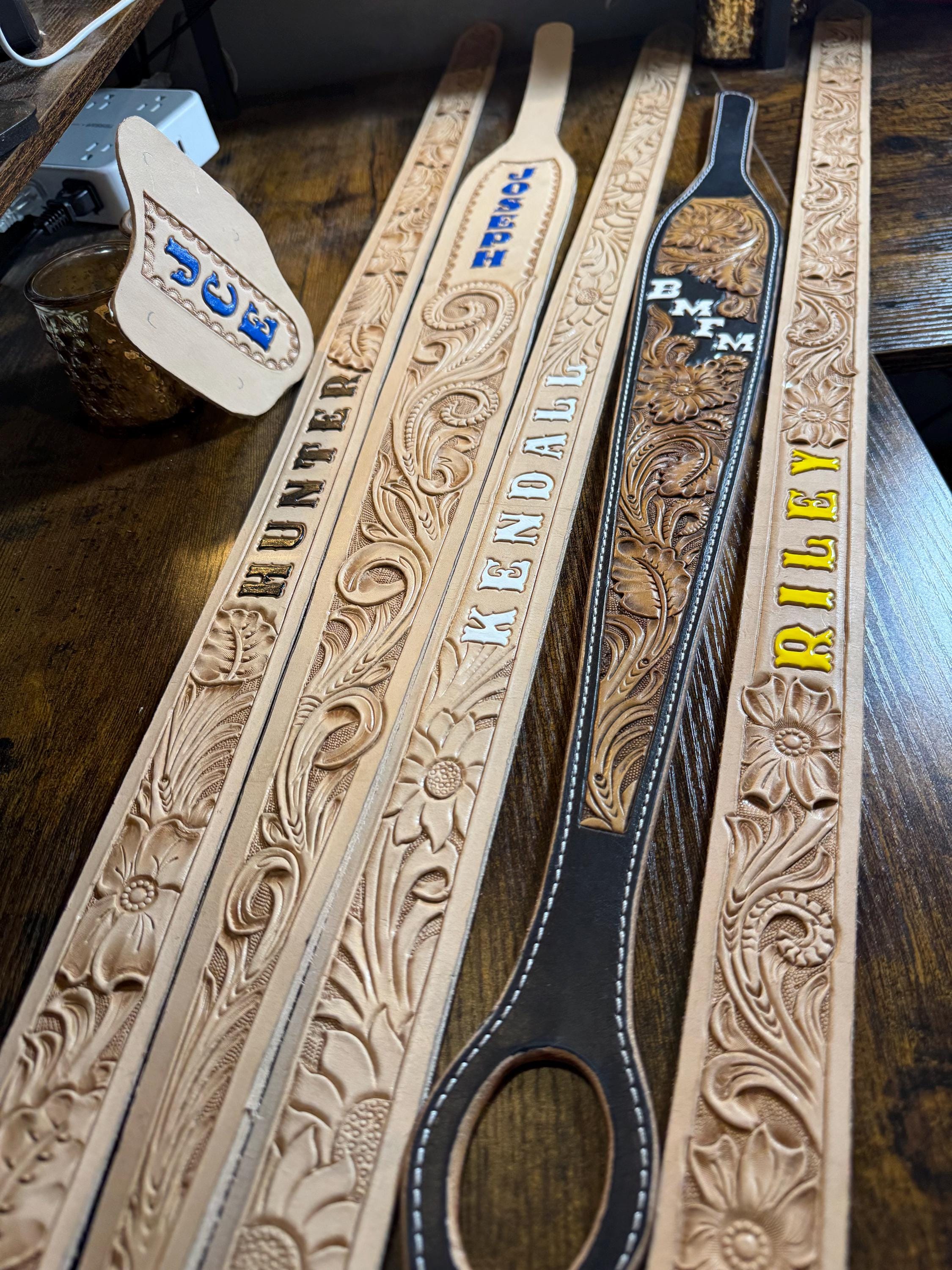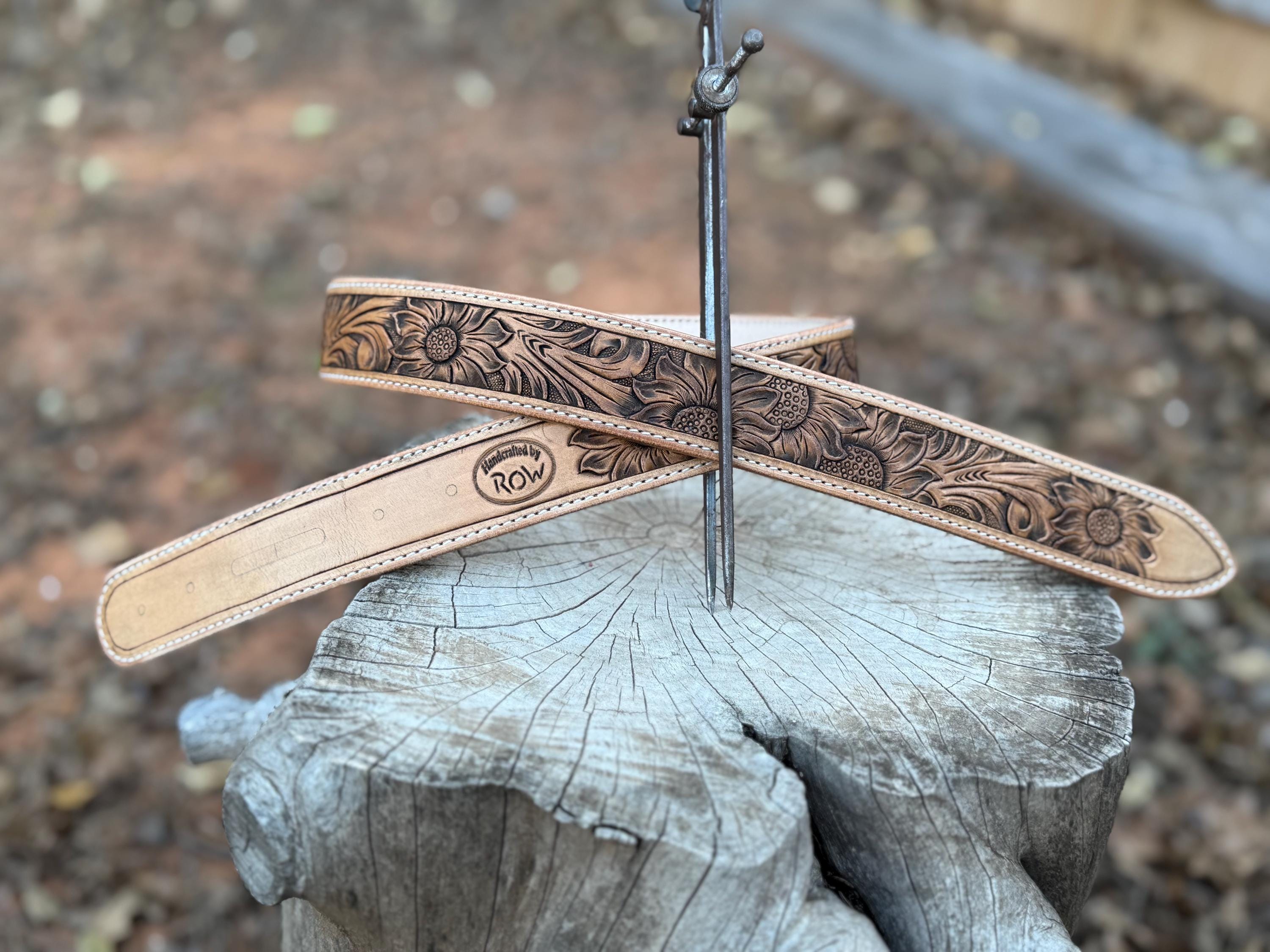 Looking for a truly unique belt? Our hand tooled, handmade, custom leather belts are crafted with care and designed just for you. Each piece is a one-of-a-kind creation, perfect for showing off your style or gifting someone special.